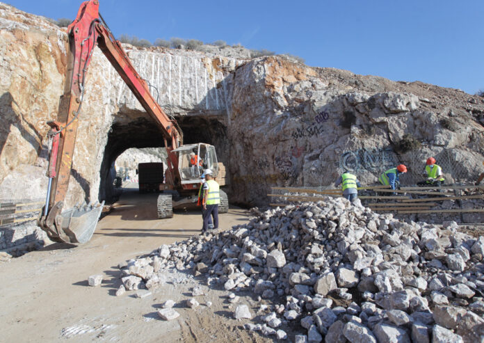 Με εντατικούς ρυθμούς προχωρούν οι εργασίες για την αποκατάσταση του ρήγματος στη σήραγγα Λουμπάρδα (Τρύπες Καραμανλή), στο ρεύμα από τη Βάρκιζα προς το Σούνιο, προκειμένου να δοθεί στην κυκλοφορία έως τις 12 Νοεμβρίου, με βάση τα χρονοδιαγράμματα που έχουν οριστεί από την Περιφέρεια Αττικής.